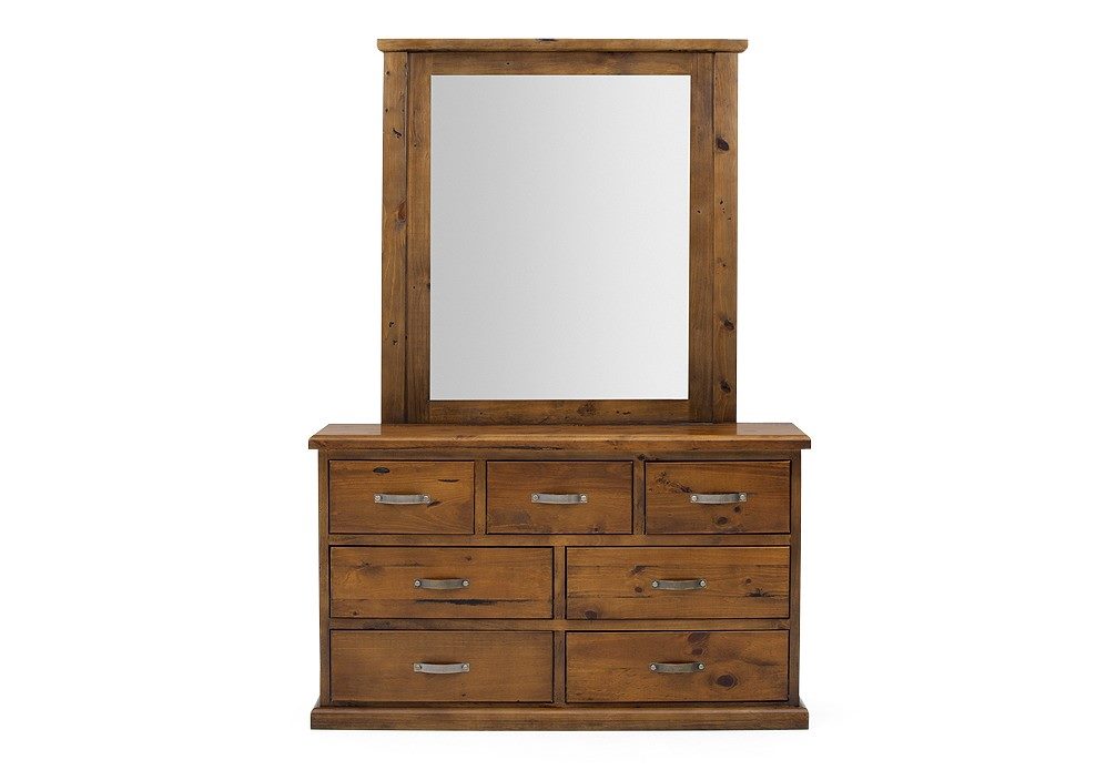 This set showcases the rustic elegance of solid pine wood and features quality workmanship with a rustic finish that adds character to your space. With generously sized drawers and heavy-duty runners, this dressing table offers both style and functionality. Discover the timeless appeal of rustic design in your bedroom.