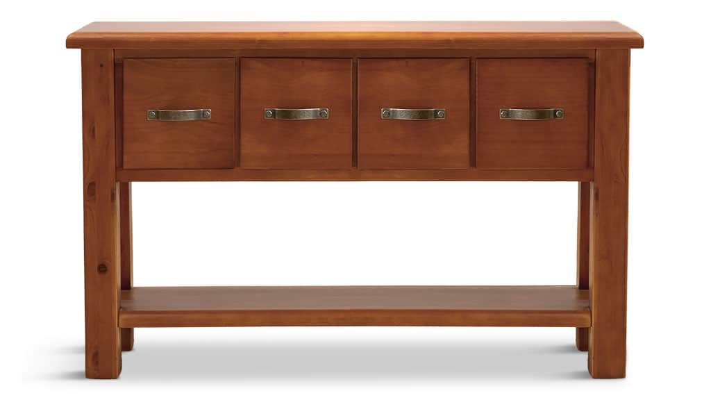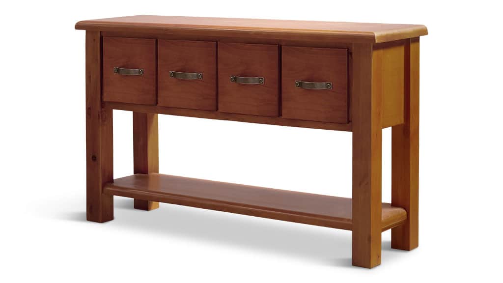 Introducing the Amado Rustic Wooden Hall Table, a sturdy and long-lasting addition to our chunky furniture range. This hall table exudes rustic charm with its robust design, four drawers, and a convenient lower shelf for ample storage. It’s the perfect choice for adding a touch of rustic elegance to your entryway.