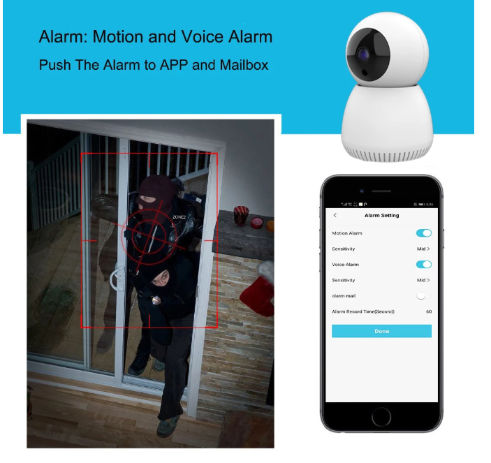 - Interactive Functionality: Two-way voice intercom, alarm push, PTZ control, mobile phone real-time recording.