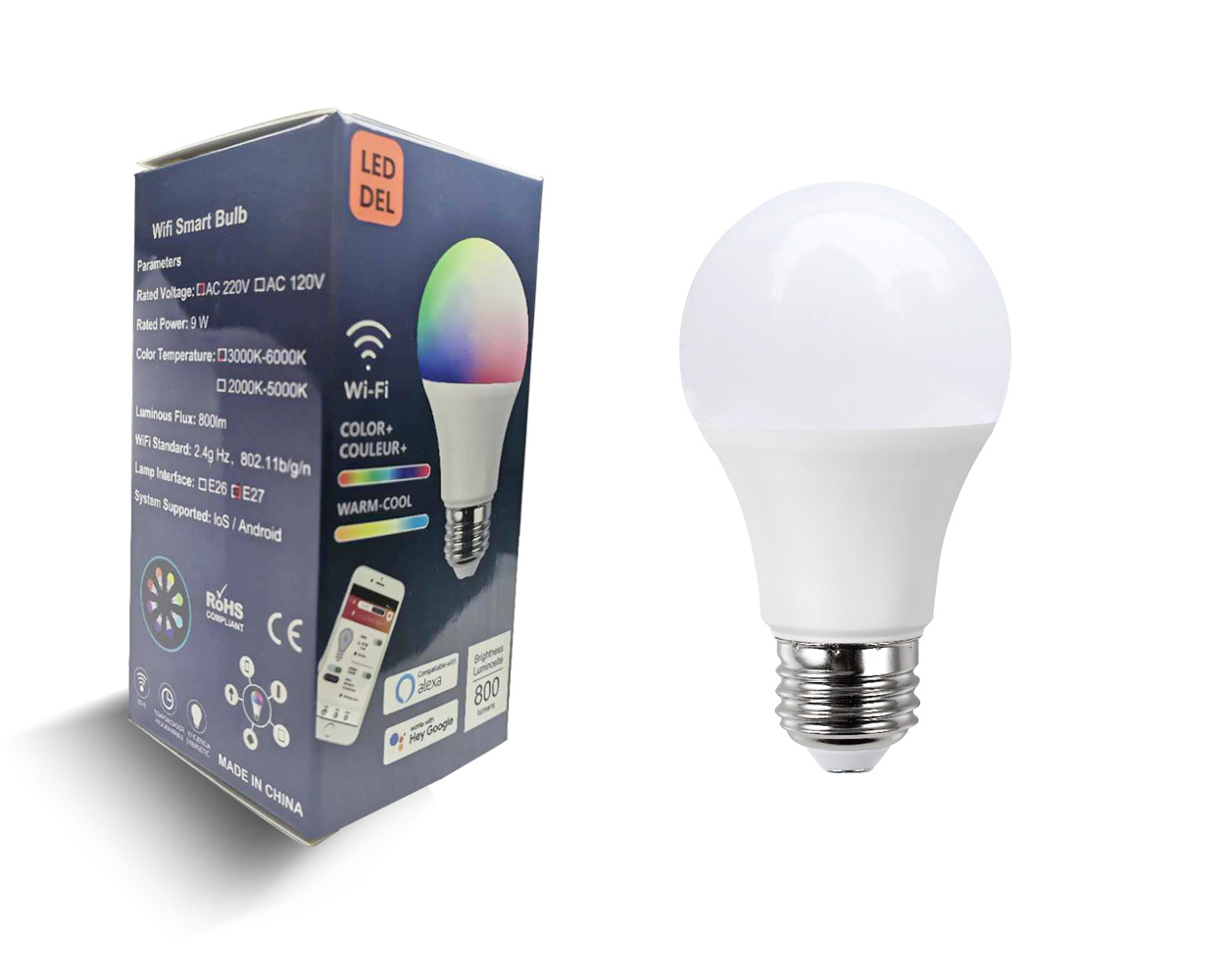 Lighting Brilliance: 9W LED bulb with RGBCW (Red, Green, Blue, Cold White, and Warm White) to illuminate your space with vibrant colors and adjustable white tones (2000-5000K).