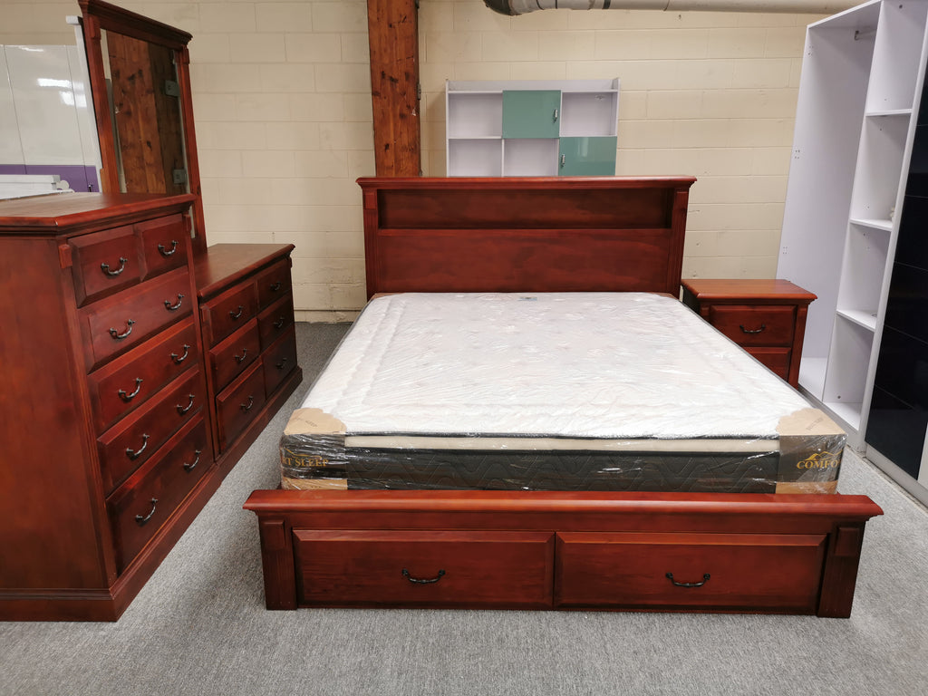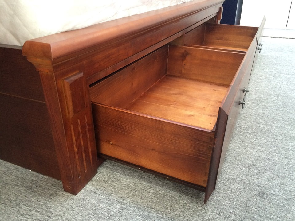 Upgrade Your Bedroom with Vina Sturdy Wood Bed with Shelf and Built-in Drawers